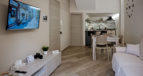 Scopri questo bell'appartamento situato al quarto piano di un palazzo nel cuore di Cefalù. Con ascensore per un facile accesso, questa soluzione è ideale per chi desidera vivere la vibrante atmosfera del centro città, a pochi passi dal mare. L'appartamento è composto da una luminosa camera da letto, perfetta per un soggiorno romantico o una pausa rilassante. Il soggiorno, spazioso e accogliente, è dotato di un angolo cottura completamente attrezzato e di un comodo divano letto matrimoniale, che può ospitare fino a quattro persone. Gli ampi finestroni offrono una vista sulla città e garantiscono una piacevole luminosità naturale.