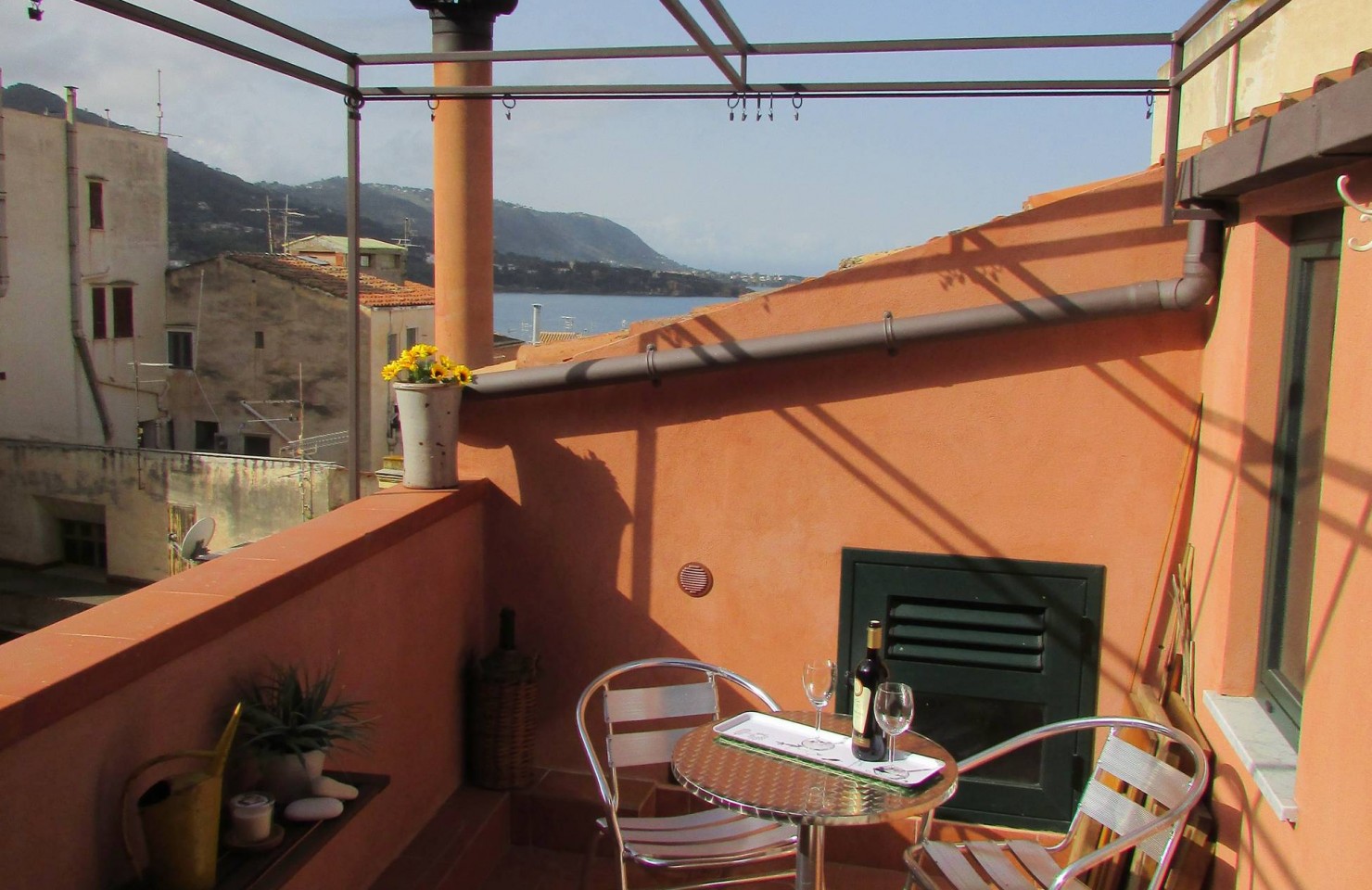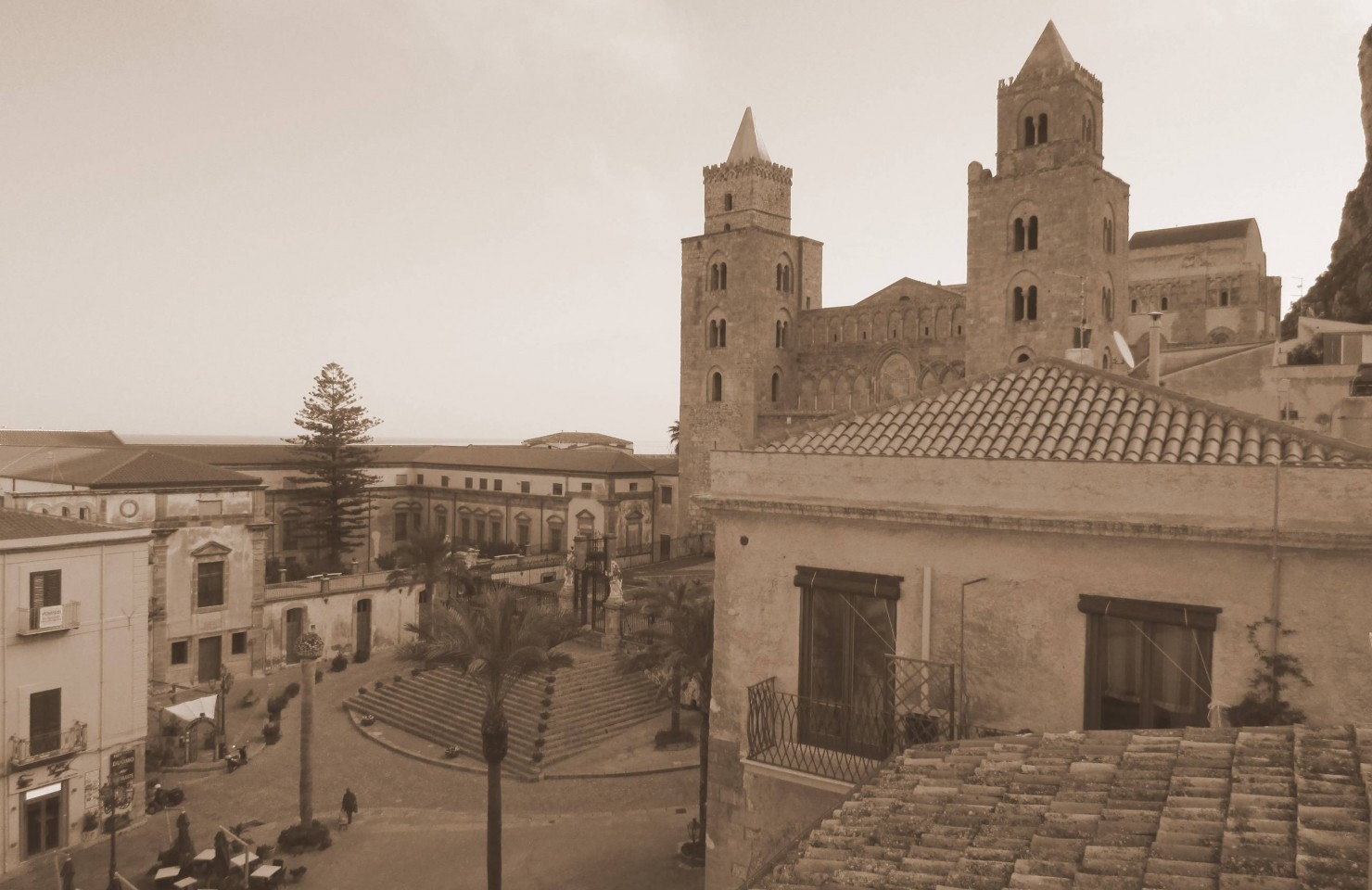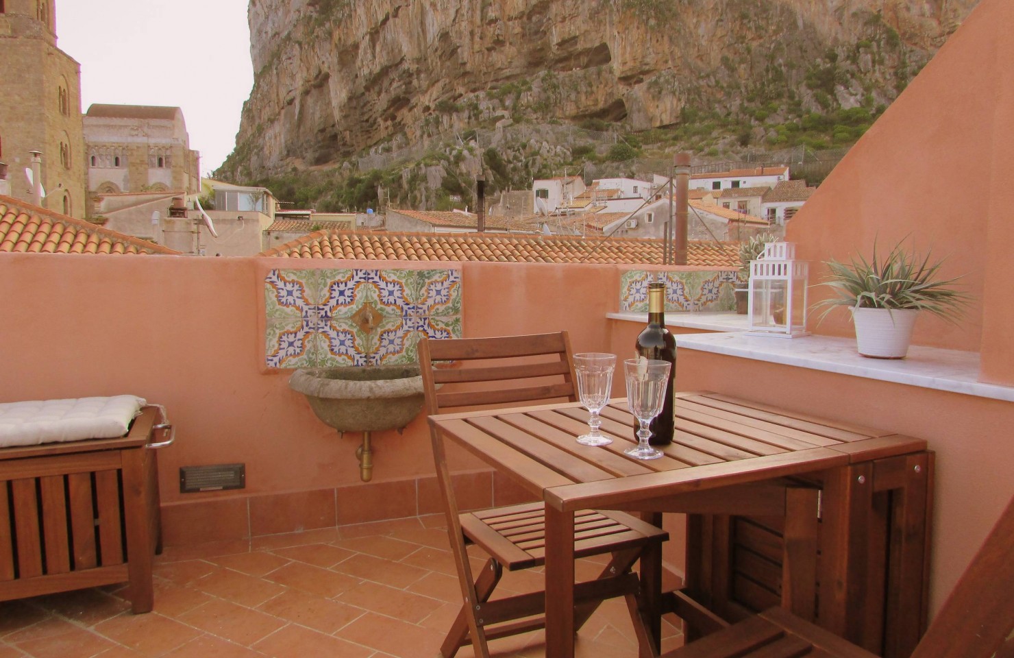 L'appartamento gode di una posizione di particolare privilegio e prestigio, in Piazza del Duomo, nel cinquecentesco Palazzo Pirajno. La piazza, dominata dallo splendido Duomo Normanno, è il fulcro della vita sociale ed ospita le principali iniziative cittadine. A pochi passi si trova il Museo Mandralisca ed in pochi minuti a piedi si raggiungono il porticciolo e la sua spiaggia, il Lavatoio Medievale, il lungomare con la lunga spiaggia sabbiosa, il percorso pedonale che conduce alla Rocca con le sue emergenze archeologiche. L'intorno è ricco di monumenti, ambienti pittoreschi, ristoranti, trattorie, wine-bar e negozi, che offrono la possibilità di un variegato shopping, dall'artigianato all'antiquariato, ai prodotti tipici, all'abbigliamento. La progettazione e l'arredo dell'appartamento sono stati curati in ogni dettaglio, per un soggiorno piacevole e confortevole. La camera da letto è dotata di tenda oscurante e dal terrazzino adiacente si gode lai vista sul mare verso la Punta di Santa Lucia ed il tramonto, oltre che sulle verdi colline che bordano il territorio e sulla Rocca. La terrazza superiore, attrezzata con divani e tavolo, offre a 360° vedute straordinarie del mare con le isole Eolie, del Duomo con le sue torri, e della suggestiva Rocca che lo sovrasta. Perfetta per cene romantiche sotto le stelle.